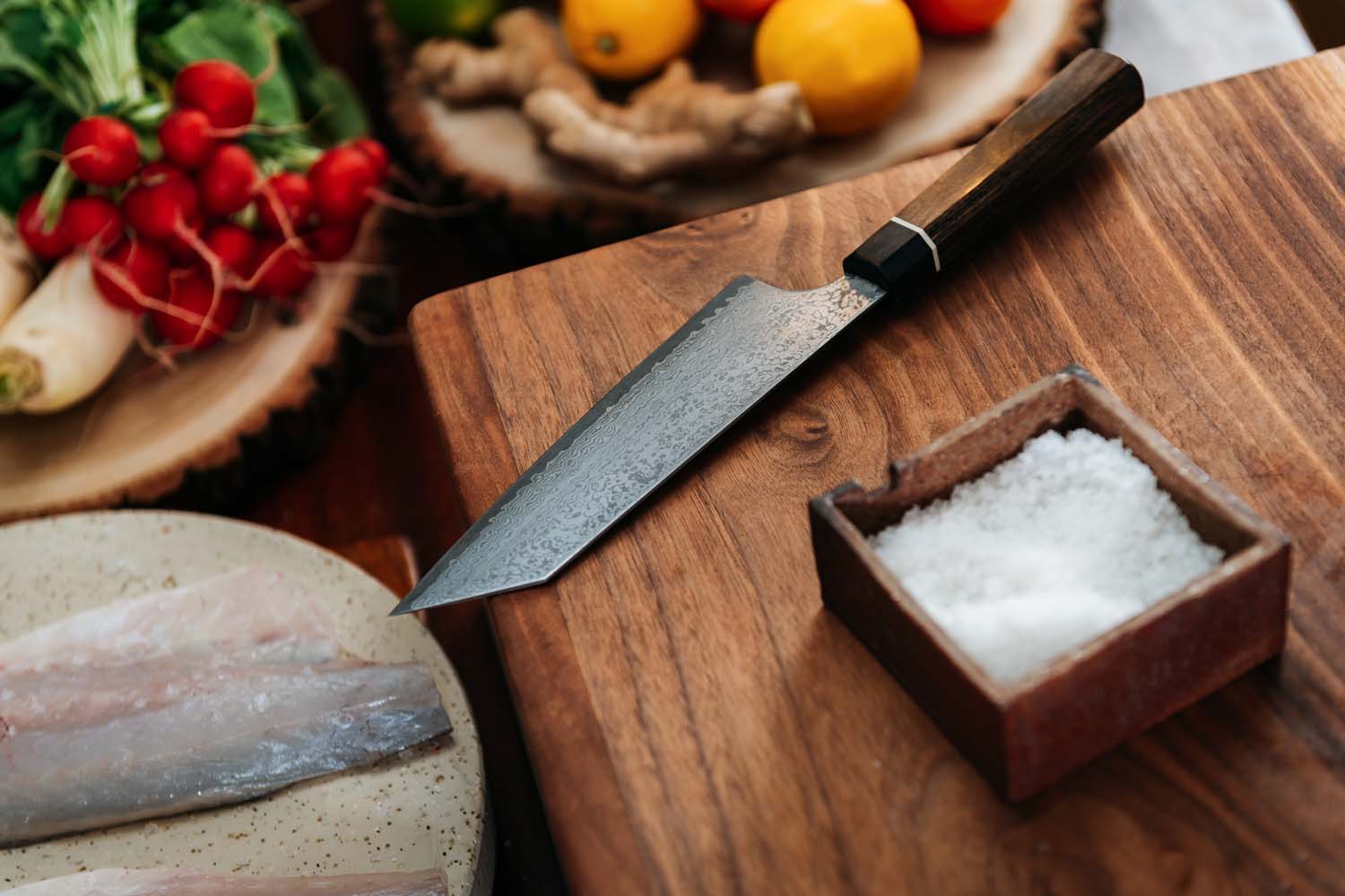 Bunka Black Damascus is a multi-purpose knife, suitable for cutting veggies, meat and fish. Primarily designed for use in home kitchens, although we are sure it will be wielded by many professional chefs that want to have a shorter, more agile multi-purpose knife at hand.